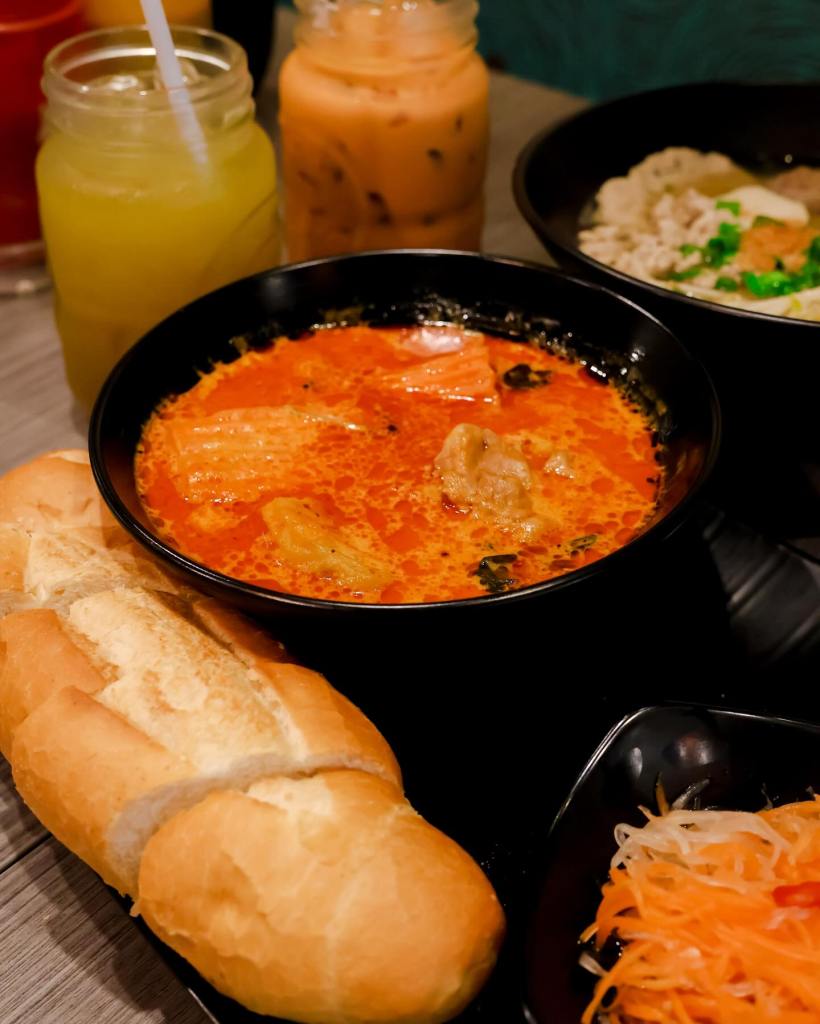 If you love curry dishes, I highly recommend the Cambodian Red Curry at Cambodia’s Kitchen. It has a rich and flavorful taste of coconut milk with a mild spicy kick topped with chicken, carrot, potato, and Khmer basil. The crispy bread they have provided is the perfect match for this curry, making it a must-try dish at this Cambodian-inspired eatery.Â